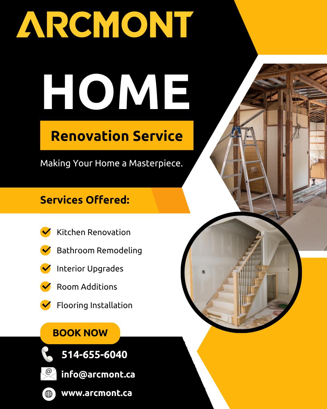 From home upgrades/modification to full-scale renovation, we’re here to make your construction or renovation project simple and stress-free. No matter the size or type of property, our team manages everything from start to finish. Just tell us what you envision, and we’ll bring it to life with the help of trusted contractors across Greater Montreal.