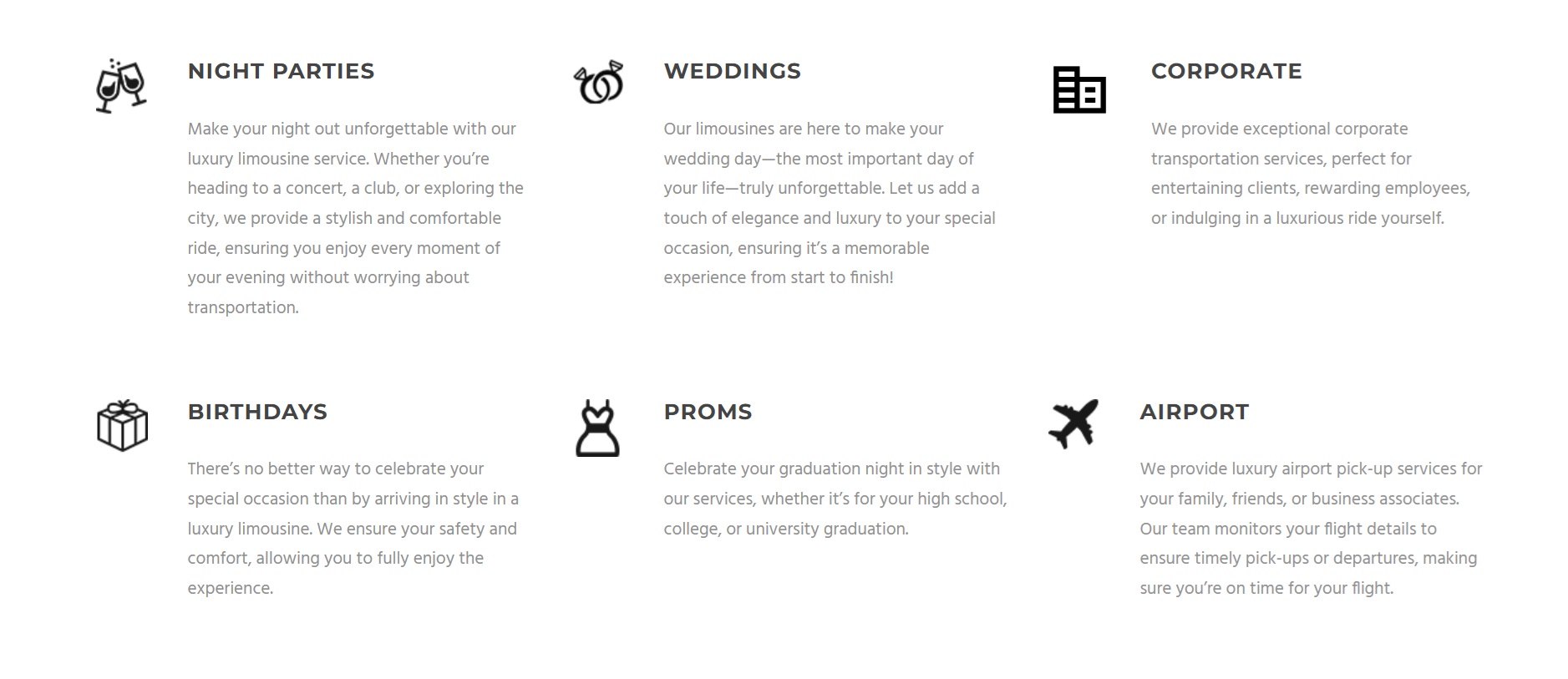 Since 2000, Elite Limousines has been committed to delivering top-tier service every time. As the premier choice for luxury transportation, we go above and beyond to exceed our clients’ expectations. Explore our impressive fleet, which includes antique limousines for weddings, luxury cars for corporate events, airport service limousines, and party buses in various styles. Whether you prefer a classic white or sleek black limousine, we have the perfect option for you. Plus, our rates are unmatched because we own our limousines—no rentals, just exceptional service at the best prices!