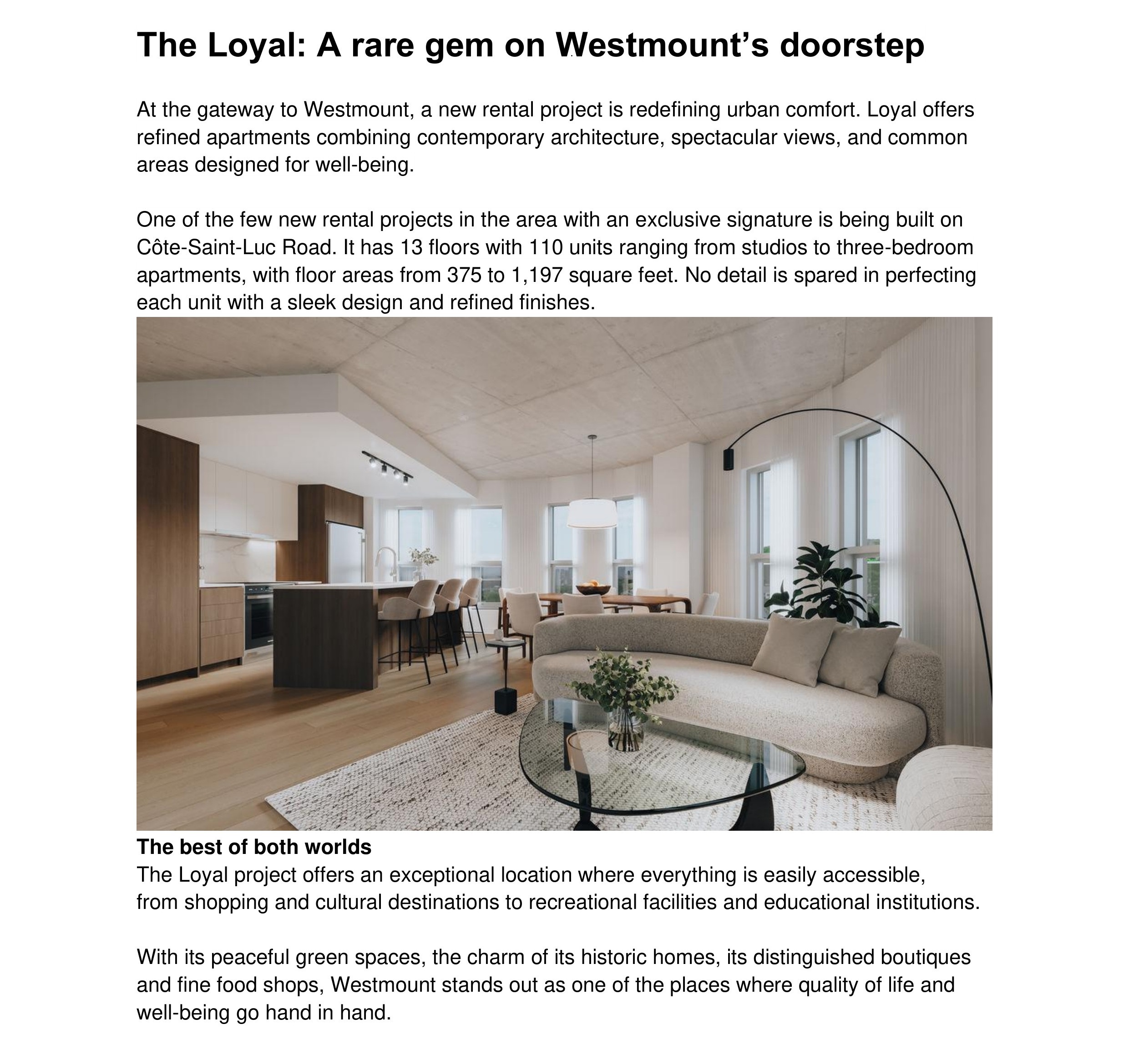 Loyal Refined Apartments Mar 16, 2026 | Main Sponsor, Real Estate Address: 4845 Chem. de la Côte St Luc, Montréal, QC H3W 0B7 Phone Number: 438 900-8383 Website: Loyal Apartments E-Mail: [email protected]